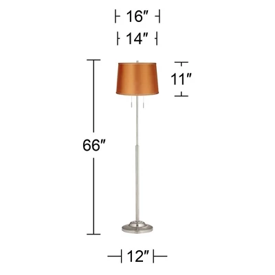 360 Lighting Abba Modern Floor Lamp Standing 66″ Tall Brushed Nickel Metal Satin Orange Fabric Drum Shade For Living Room Bedroom Office House Home