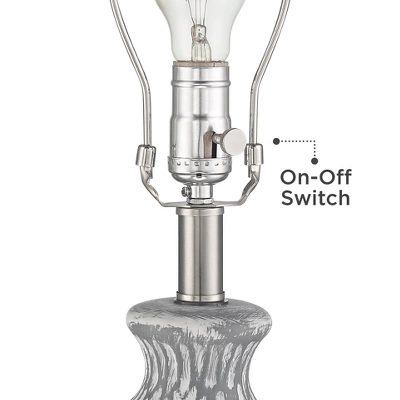 - Whitewash and gray finishes. Ceramic construction. White drum shade. 7-foot long cord.