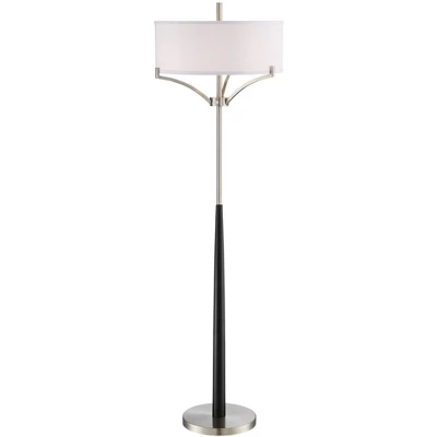A handsome, modern floor lamp design in black and brushed nickel finish with three metal arms that extend upward to cradle the linen drum shade. This 2-light design is ideal for today’s urban decor.