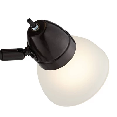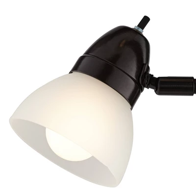 - Tiger bronze finish. Metal construction. White glass shades. 6-foot long cord.