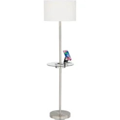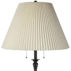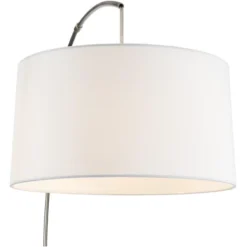 360 Lighting Traditional Swing Arm Floor Lamp 70″ Tall Antique Brass Imperial White Fabric Bell Shade For Living Room Reading Bedroom
